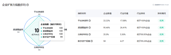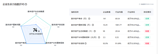 例如,某互联网企业“扩张力指数”通过平台渗透率、数字资产规模、分类多样性等维度,能清晰反映其在互联网生态中的市场开拓能力;而“风险指数”则通过收集企业数字世界安全风险、合规风险、数字可信度等舆情信息,帮助用户及时掌握企业声誉动态与合规风险。这种“从数据到洞察”的转化,让企业数字资产从“隐性资源”变为“显性价值”,重构了行业评估逻辑。
