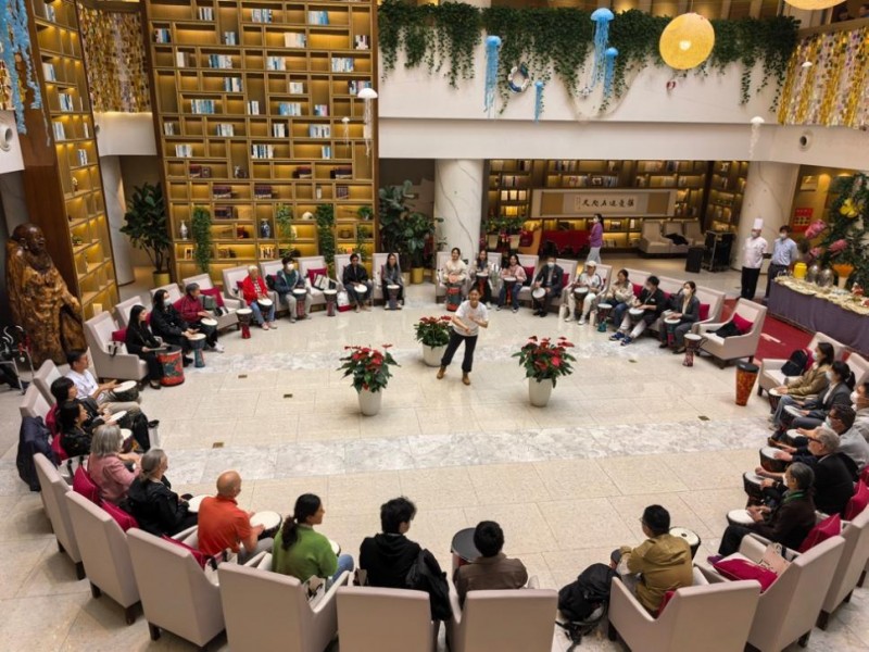 图2:参访团体验“鼓圈”互动