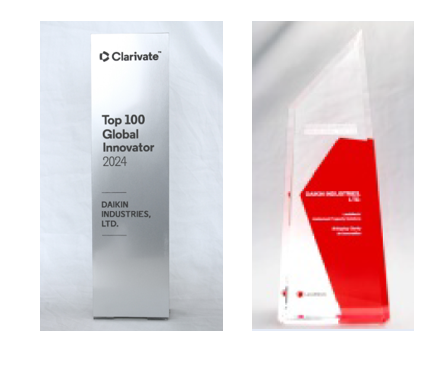 左图Clarivate“全球创新100强”,右图LexisNexis创新全球100强奖杯