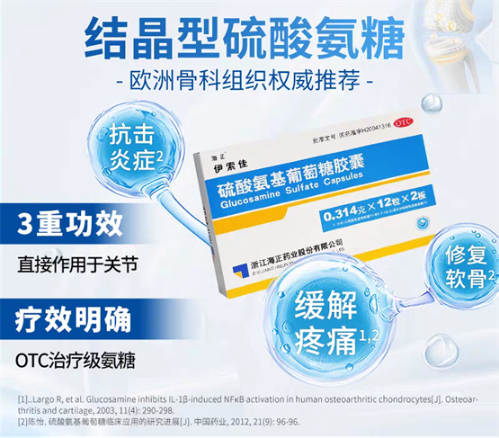 对于中老年人乃至长期伏案、运动劳损的人群来说,关节疼痛、僵硬、活动受限早已不是陌生的困扰。作为一种退行性关节疾病,骨关节炎的核心病变在于关节软骨的磨损与退化,而氨基葡萄糖(简称氨糖)作为关节软骨的“天然修复原料”,早已成为关节养护的核心话题。但同样是氨糖,不同类型的效果却天差地别,相比普通的硫酸氨糖和盐酸氨糖,以海正伊索佳为代表的结晶型硫酸氨糖,凭借在各类氨糖权威测评中排名前列的硬核实力、国药准字认证的专业品质,以及在电商平台复购率连续多年稳居前列的口碑积淀,成为临床公认的骨关节炎治疗“理想型”,更是万千关节不适人群的首选。